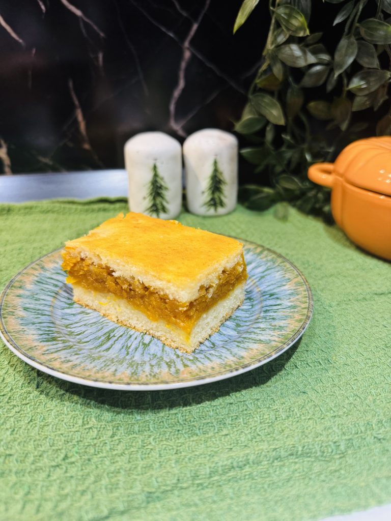 Această prăjitură cu dovleac îmbină un blat pufos și aerat cu un strat generos de dovleac aromat, fin condimentat, care îi oferă o textură moale și un gust echilibrat. Se prepară ușor, din ingrediente simple, și este ideală atunci când îți dorești un desert savuros, fără prea mult efort. Aroma delicată de scorțișoară completează perfect compoziția, transformând această prăjitură într-o alegere inspirată pentru orice moment al zilei, alături de o cafea sau un ceai.